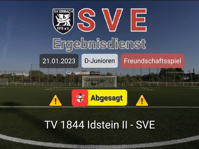 Spielbericht Das Freundschaftsspiel unserer D-Jugend beim TV 1844 Idstein II wurde witterungsbedingt abgesagt.