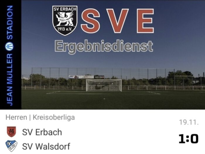 Bilder zum Spiel Aufstellung Spielbericht Unsere 1. Mannschaft von Trainer-Team Timm Belz und Kevin Faist gewinnt mit einer starken Leistung mit 1:0 (1:0) gegen den SV Walsdorf. Unser SVE fügt den Walsdorfern somit die erste Saison-Niederlage zu und behält die wichtigen 3 Punkte in Erbach. Unser Team glänzte heute über die gesamten 90 Minuten mit einer bärenstarken Leistung. Die anwesenden Fans empfanden das Spiel als beste Saison-Leistung und waren von der kämpferischen Einstellung begeistert. Man hat schon gesehen, dass der SV Walsdorf gute Kicker in seinen Reihen hat, aber heute trafen sie auf aufopferungsvollen Widerstand. Vor dem Tor gelang am heutigen Tage nichts, aber Möglichkeiten gab es trotzdem einige. Vor dem Tor war unser SVE heute einfach effektiver. Felix Käfferbitz legte den Ball erstklassig auf unser Erbacher Eigengewächs Nathan Niebler, der den Ball in den Winkel hämmerte. Ein Wahnsinns-Tor der Marke „Tor des Monats“. Glückwunsch Nathan 🥰 Walsdorf hätte sich zwischendurch auch nicht über ein 2:0 beschweren können, aber unsere Mannschaft brachte mit großem kämpferischen Einsatz auch den 1:0 Sieg sicher unter Dach und Fach 💪 Torschützen Spielverlauf Aufstellung Quelle „Aufstellung“, „Torschützen“ und „Spielverlauf“: FUSSBALL.DE Bildergalerie