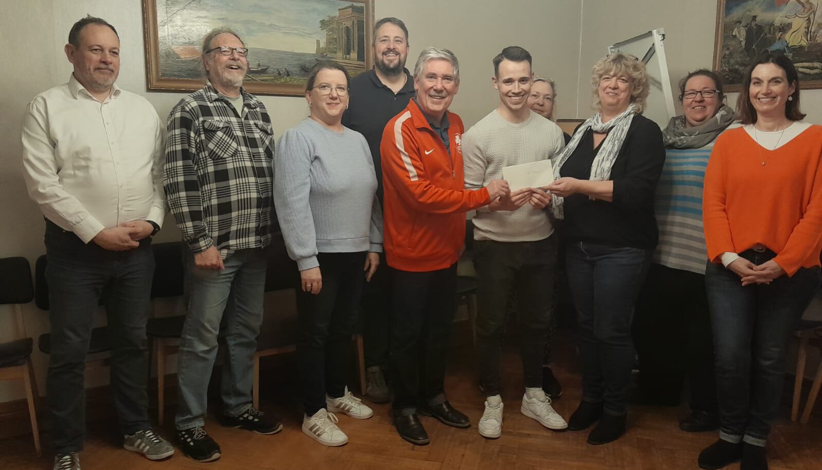 Unser 1. Vorsitzender Ulrich Bruns und Jugendleiter Tom Weigl nahmen die Unterstützung für den Verein entgegen.